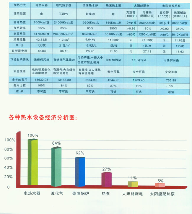 以下是相同條件下對1T生活用水從20℃加熱到55℃的費用及全年費用對比。